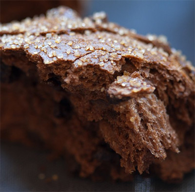 - Faites fondre le beurre et le chocolat au bain-marie. Dans la cuve d'un robot, versez le lait tiède et la levure de boulanger. Ajoutez la farine, le sucre, la poudre de cacao, la fleur de sel et la crème épaisse. Mélangez avec le crochet pétrisseur pendant 5 min à vitesse lente, puis 5 min à vitesse moyenne. Repassez en vitesse lente et incorporez en trois fois le mélange beurre et chocolat légèrement tiédis. Lorsque la pâte se décolle des parois du bol, ajoutez les pépites de chocolat.